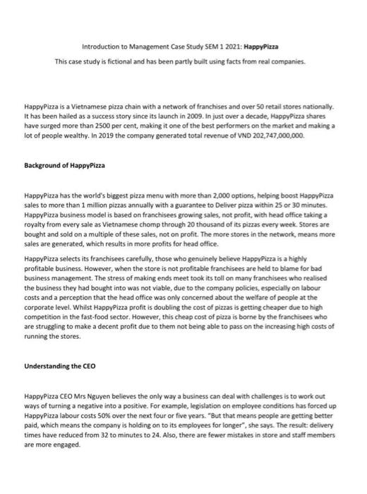 Solved Introduction To Management Case Study Sem 1 2021 Chegg Com